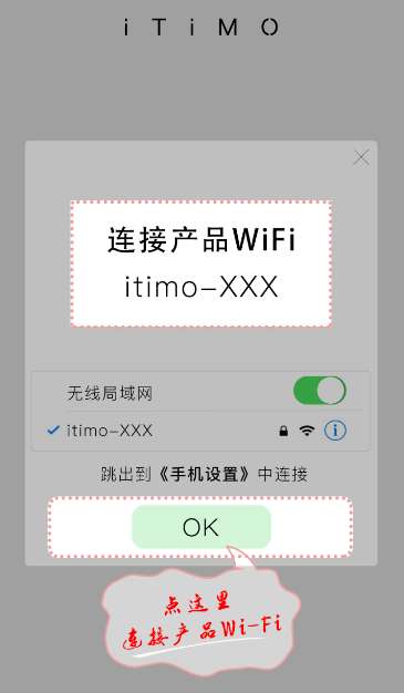 3、点击下载好的itimo软件,进入界面点击小房子,进入设置wifi连接ITIMO-xxx,有提示权限全部点“允许”,链接上WIFI后,点击小房子即可查看实时画面。