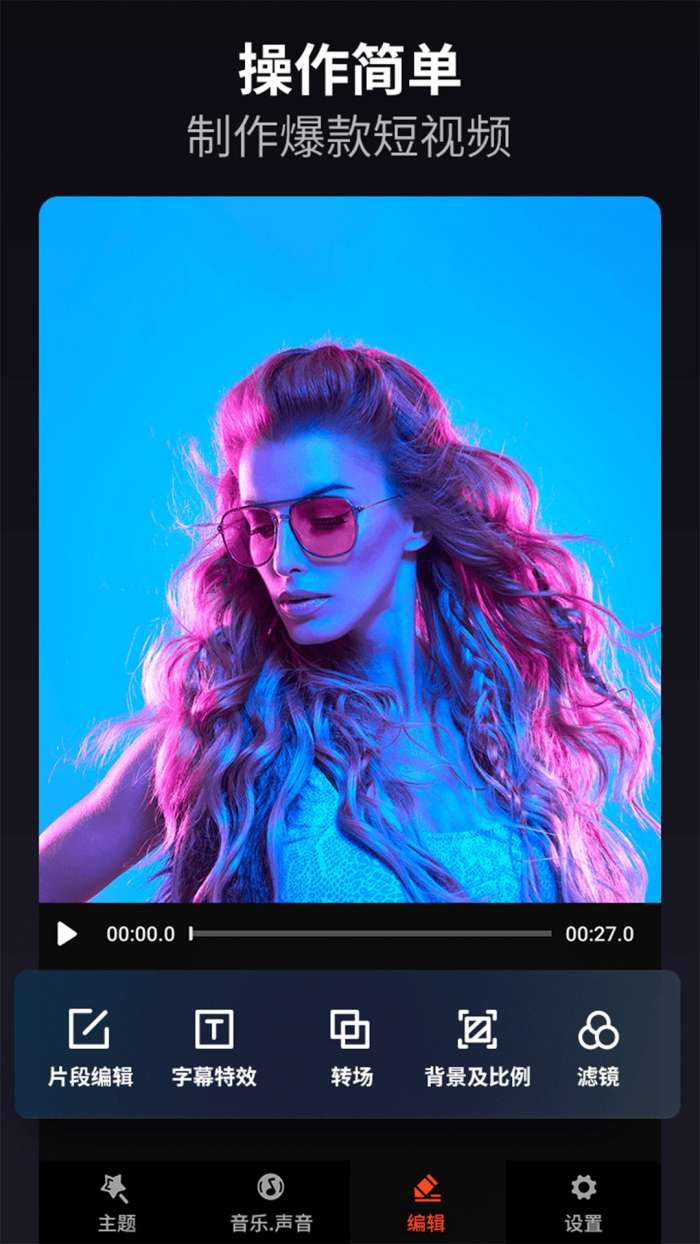 2、【视频滤镜】电影胶片级视频滤镜,美颜、Lomo、HDR,成为视频剪辑大师。