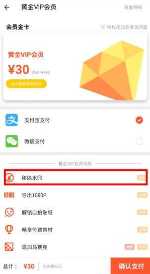 1、若是想要去除乐秀中的水印,第一项前提就是你需要充值成为软件的黄金,因为只有才拥有去除水印的服务,点击左侧“黄金vip”选项,即可花费30元开通。