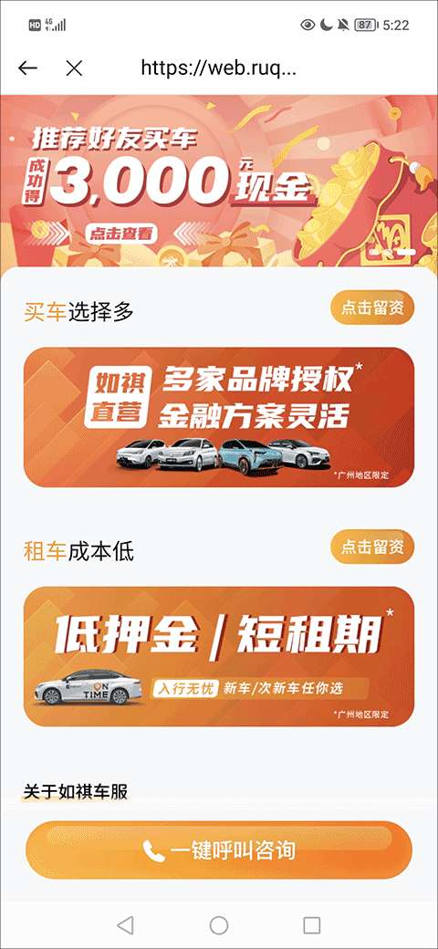 3、然后,在此处找到并点击“买车”或“租车”选项。