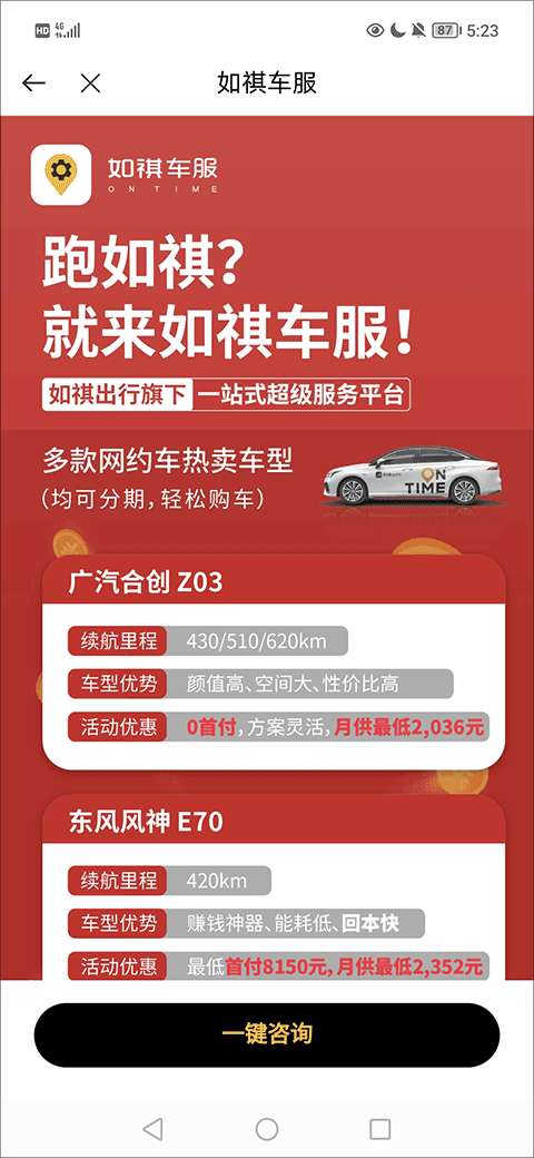 4、在如祺客服界面找到并点击“一键咨询”选项。