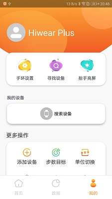 Hiwear Plus是一款需要搭配智能穿戴设备实时监测运动、健康数据的软件,在软件中用户需要将智能穿戴设备在线添加,连接设备即可对用户每天的运动数据实时追踪记录,精准记录用户每一次的运动数据,并将用户的各项运动数据可视化统计展示,便于用户清楚的查看了解自己每天的运动情况,还可以对用户身体的各项健康指数进行实时监测,用户可以随时查看了解自己的身体健康情况,帮助用户更好的管理健康,发现异常能够及时看病治疗。
