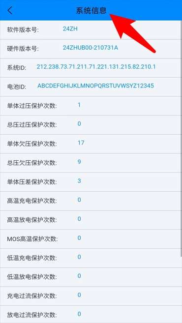 4、系统信息页面展示软件版本、电池ID与各类保护触发记录,便于故障追踪排查。