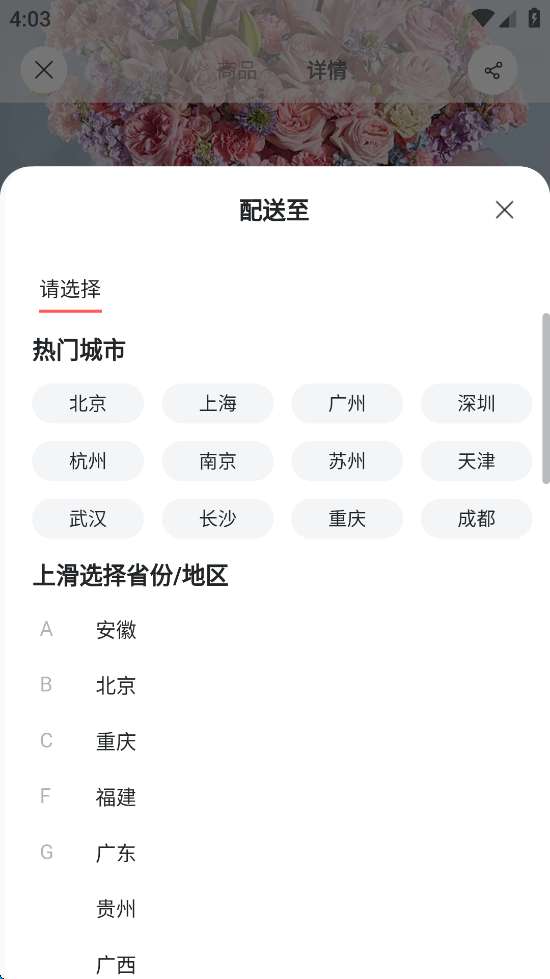 4、选择一个城市,尽量选择一个受欢迎的城市,因为在某些城市无法送货。