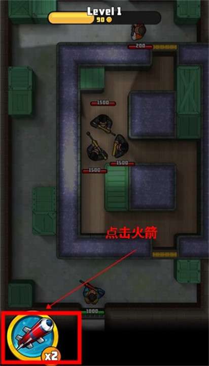 4、游戏中在进入下一关,可以点击左下角的火箭消灭敌人。