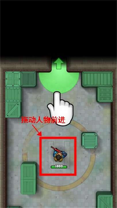1、玩家进入游戏后需要根据指引拖动人物前进。