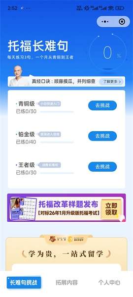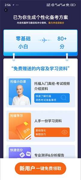 4、能力测试:由一支拥有12年以上教学经验的教师团队开发,可以在20分钟内快速评估当前的托福水平,并智能生成个性化的准备计划。