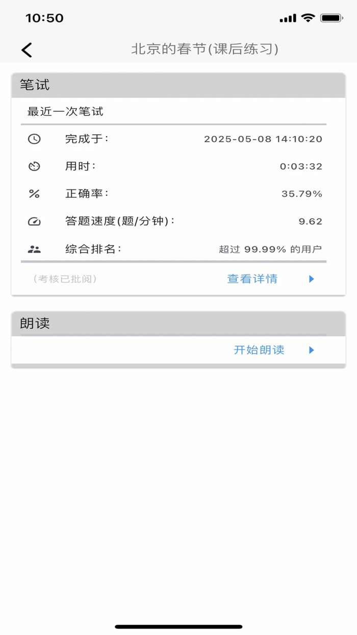 展示了关于用户的成绩排名,能够查看朗读评估的分数,实时记录参与排名。