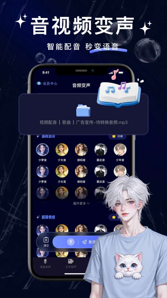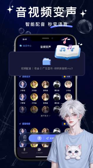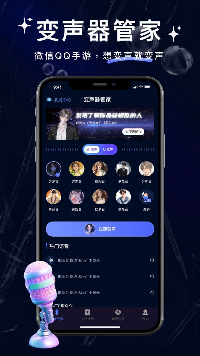 4、实时语音聊天变声:男声可以瞬间变成萌妹子声或御姐声,语音转换自然流畅,让聊天充满新鲜感和趣味性。