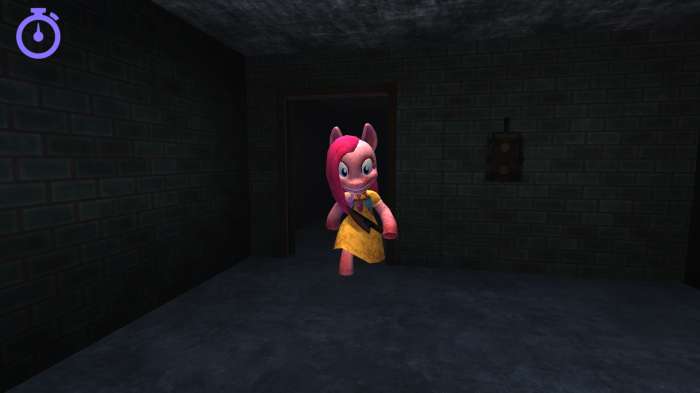 这是一款粉丝向恐怖手游。进入游戏,玩家将被恐怖的小马宝莉囚禁在阴森复杂的地牢迷宫中。为了拯救其他小马同伴,你要独自探索地牢,在躲避追捕的同时打开监狱大门,寻找隐藏的钥匙。
