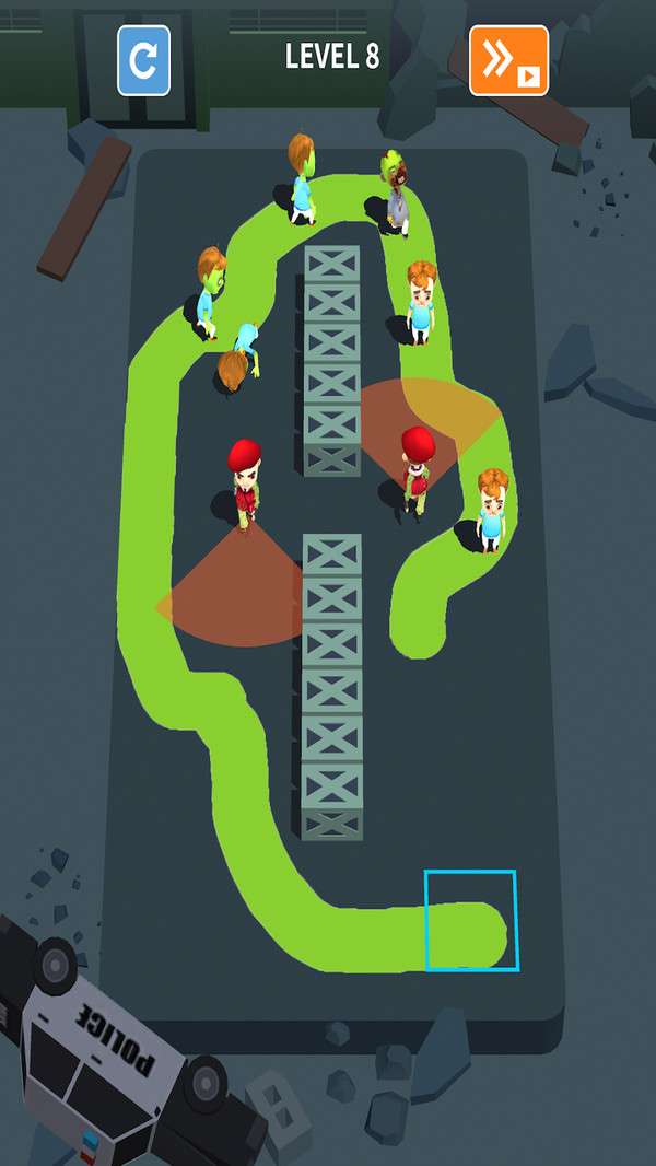 僵尸僵尸这个是能够颠覆你认知中的那些僵尸形象的休闲类手游。里面的主角是僵尸,玩家又变成了一个僵尸,包租婆一样的形象,在这当中玩家们要做的事情就是躲避那些在搜寻的人,你们会沿着这个长长的绿绿的走道不断的行走目的就是为了走到区域里圈出来的那一块地盘。