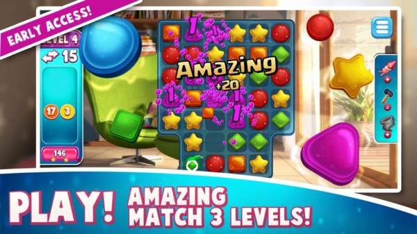 设计完美房子在游戏的世界里面,玩家们可以参与到房屋的设计中去不过想要获得很多新的金币生意,就需要通过完成消除的任务,在这里消消乐的玩法,很经典,不过设计了很多不同障碍,以及特效。新手玩家先把简单的关卡完成之后,就会有一些道具出现,慢慢的后面就会解锁出更多的小道具,想要获得可以通过用金币购买,或者是参与每天的签到活动,能够有机会获得。