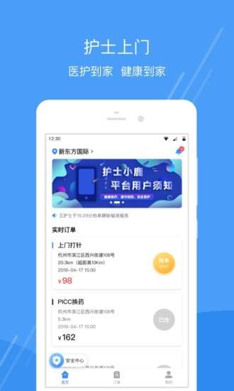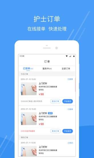 1.快速获取订单:用户下订单并发布所需的医疗服务。根据他们的需求抓取订单,并到达服务地点以在订单的有效期内完成订单。