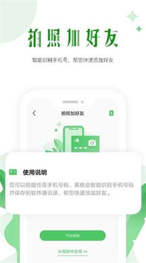 1.系统可以自动识别电话号码并将其保存在通讯录中,以帮助用户智能地添加朋友;