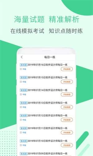 准备考取软件设计师资格证的小伙伴看过来了,软件设计师考试是一款可以帮助我们快速提升学习成绩的软件,它里面有着许多关于软件设计知识和课程供我们学习观看,而且汇聚了历年全部的试题,让我们可以通过软件进行模拟考试,提前认识到自己的不足。