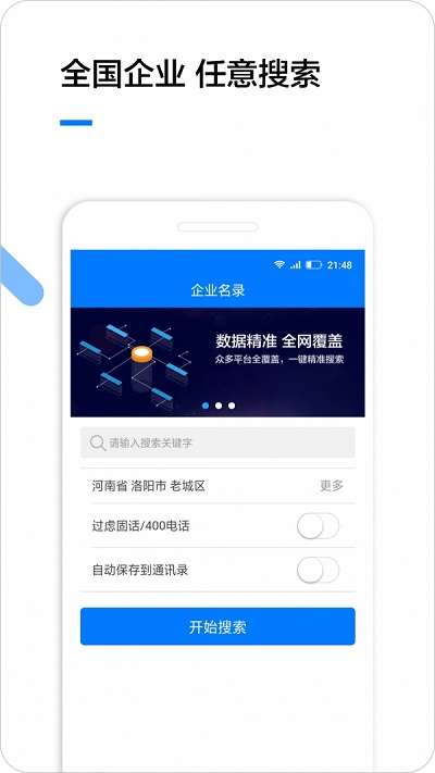 2.精确的定位信息,该软件可以设置二级城市,运营模式,行业,注册年份等条件,帮助您更快地找到客户信息;