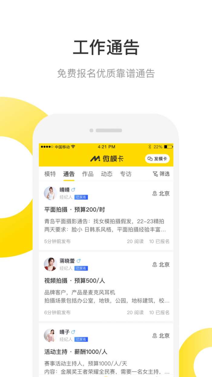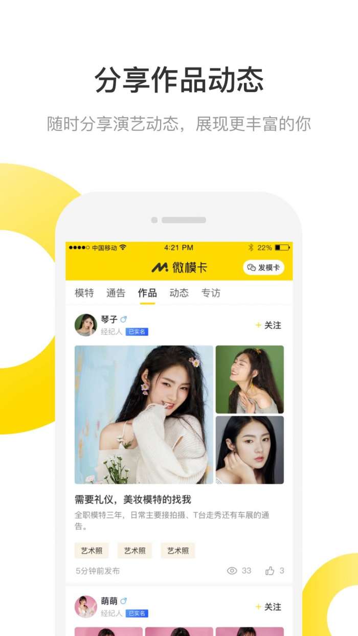 微模卡在这一款服务平台上面是可以很好的去进行植入各种各样的演艺人的图片,模特卡以及在线的电子卡等等的功能,可以让用户部门在这边享受免费使用的,同时在上面还可以为用户们提供全国非常优秀的模特资源和各种各样的经纪人立即模特,学校化妆师等等的公司资源,可以让用户们去进行,报名参与这个人才服务的一个平台,也是非常适合,那些想要去当模特网,红主播的用户们,在这块软件上可以去进行报名,这款软件上是拥有超多的丰富功能,可以让屈菁菁也可以使用的,而且能够让你更好的在上面去进行发展。