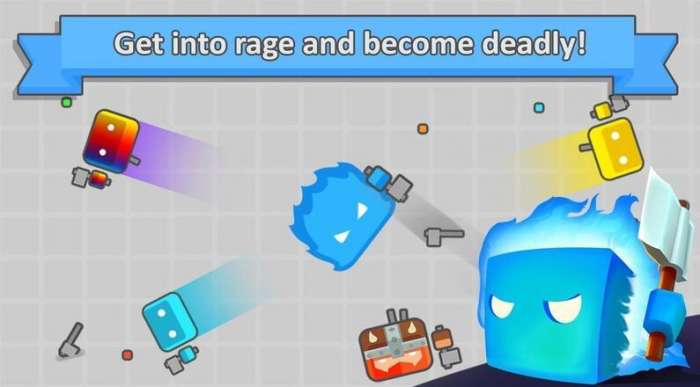 2.搜集斧子通过投掷的方式参与大乱斗攻击别的小方块;