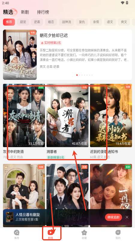 1、到达短剧栏目选择自己感兴趣的短剧。