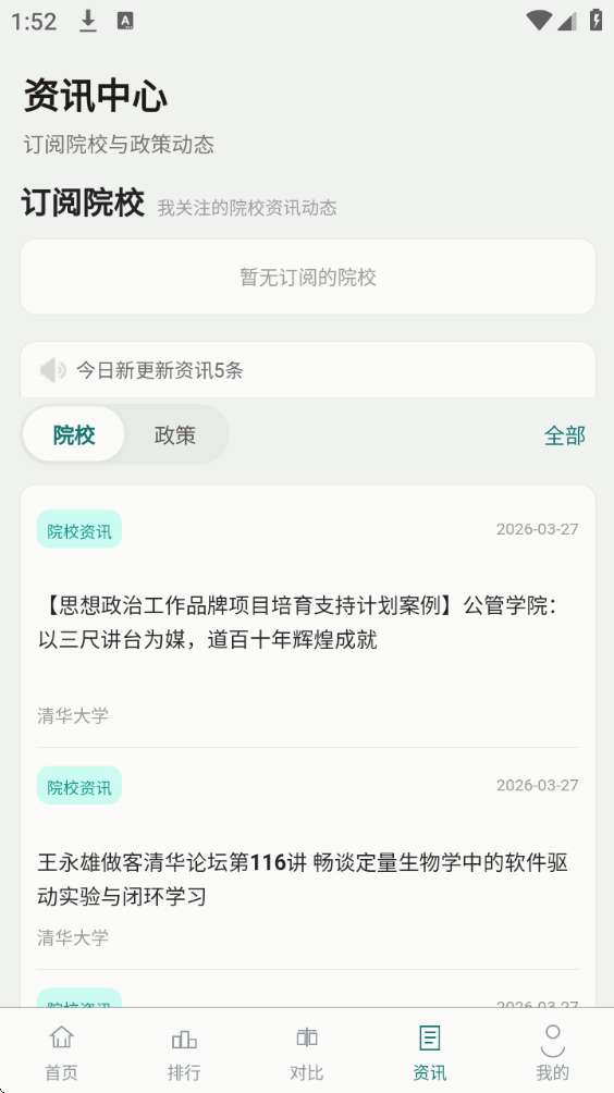 3、之后就可看到更多的院校资讯列表,点击选择“资讯”来进行下一步。