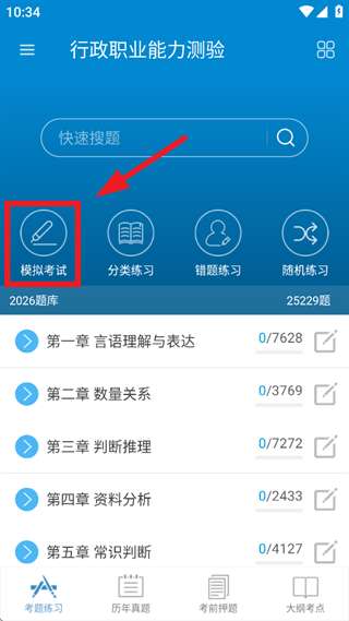 1、打开公务员考试华云题库应用程序,输入后点击模拟考试。