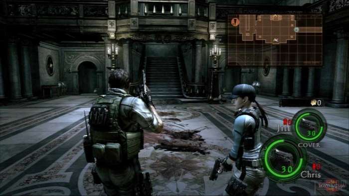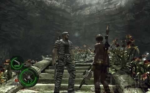 4-左,右,后,都有道具可拿,拿完了再前走开门,开门进入剧情,剧情后先把杂兵清掉,然后来到中央位置转动摇杆来开门,门开启后快速冲过去,速度慢了就要重来,Chris自己冲过去就算成功,成功后进入剧情