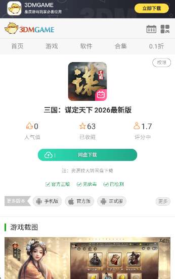 1、在当前页面下载三国:谋定天下2026最新版安装包。