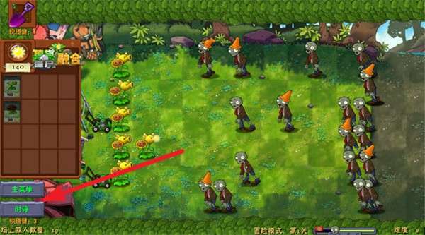 4、还能使用左下角的时停,僵尸就会停止行动,玩家可以趁着这个时间多思考一下策略。
