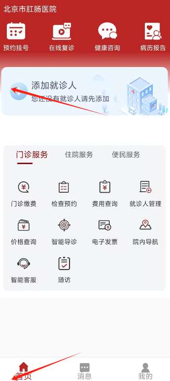 1、用户在软件首页点击添加就诊人即可进入就诊人管理界面。