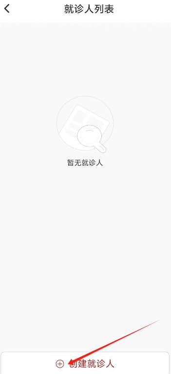 2、用户在就诊人列表点击底部创建就诊人,即可进入信息提交界面。