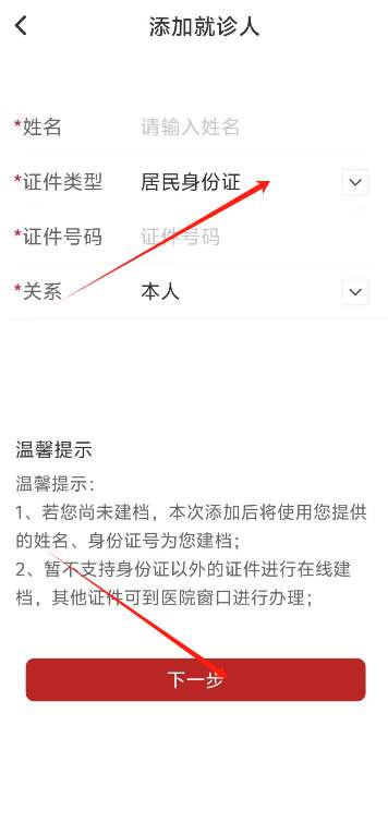 3、用户输入就诊人姓名以及证件号码等信息即可进行审核添加,提升用户预约就医的便捷性。