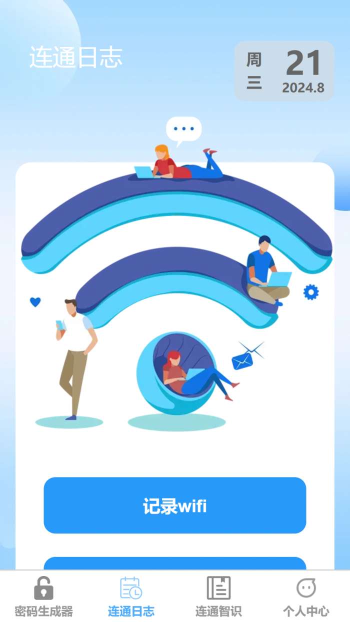 2、【连通日志】独特的连通日志功能,为您精心记录并管理WiFi。无论是家庭网络的稳定网络,还是公共的WiFi,都能轻松实现记录与管理,让您的在线生活更加安心无忧。