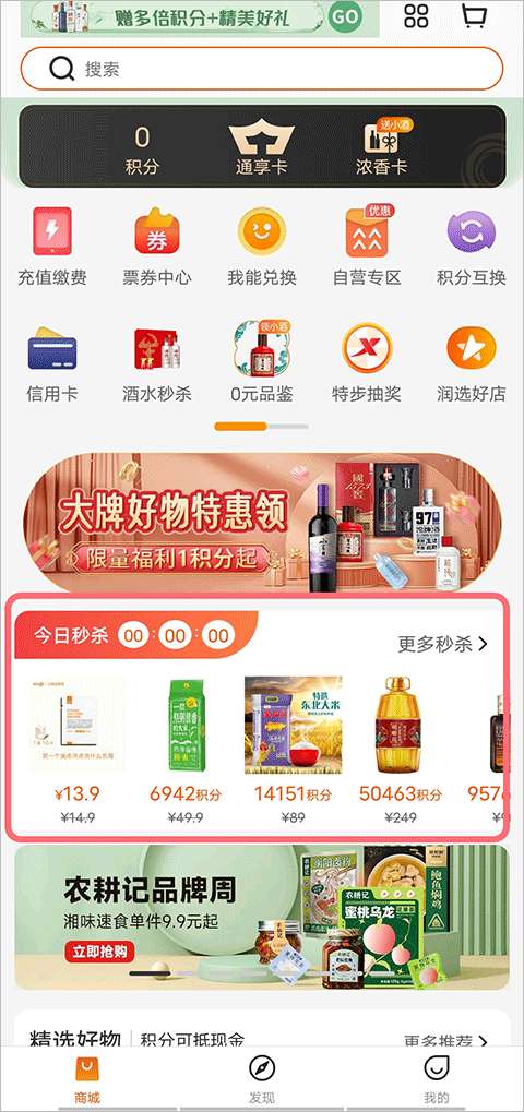 7、华润通联名卡:本月刷卡金额,次月以每2元积1分的比例,转化为华润通积分。