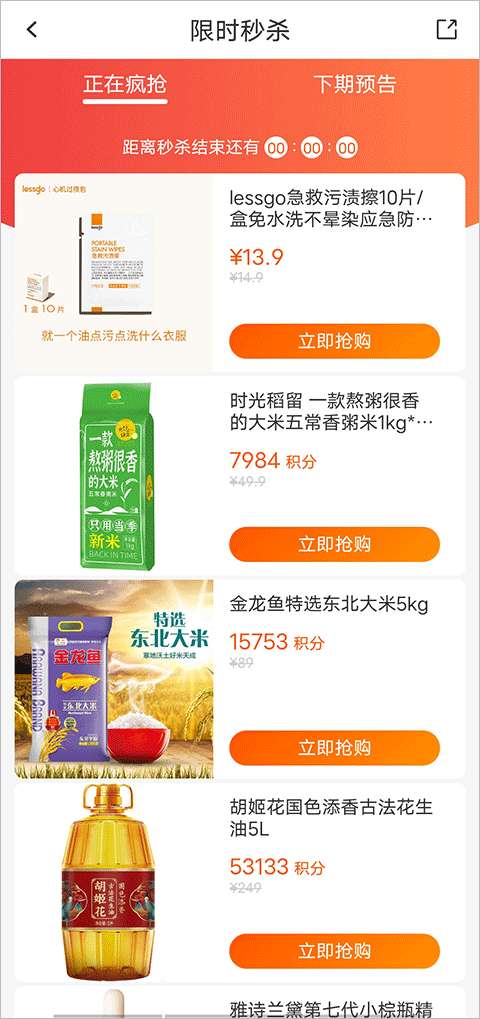 2、在限时秒杀界面内所有的物品都是无需另外加钱兑换的,点击“立即抢购”就能够去购买。