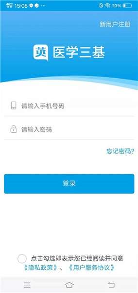 1、下载医学三基考试宝典app,输入账号进行登录。
