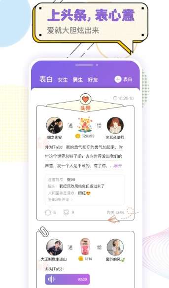 3、心动的声音 语音聊天可以让用户遇到打动你内心的声音,成为声控用户的福利知音。