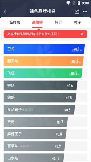 3、页面将显示辣条品牌的实时排名榜单。