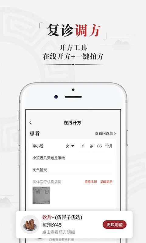 药匣子是一款热门的药品购物软件,汇集了来自全国各地的优秀中医从业者,支持电子处方、在线随访和随访处方调整等全流程服务,可以轻松让患者进行咨询,也可以自动生成医疗记录,能完全满足所有使用需求,还与各大优质药店合作,确保药品质量和交付时间,方便用户轻松正确用药,还具有全新的搜索功能,允许用户轻松查找病历,随时随地做好安排,轻松了解查看各种新闻信息,有需求的用户欢迎下载软件。