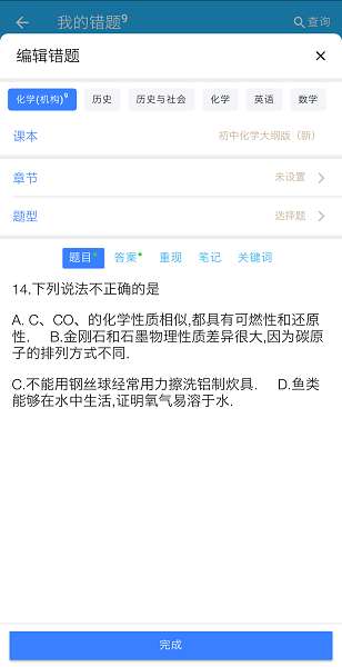 4、多学科综合覆盖:支持对数学、物理、化学、英语等主要学科的错误问题进行分类管理,满足从小学到高中所有教育阶段的需求。