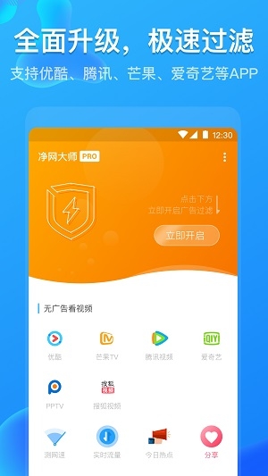 一键过滤主流视频网站广告,拦截爱奇艺、腾讯、芒果等主流视频广告,无广告更流畅;