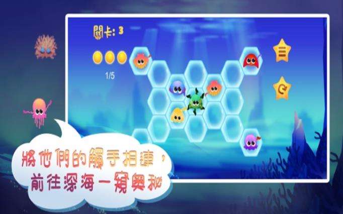1、要注意每一个水母都上了一个触手,通过连接的方式,让他们能够在一起手拉着手就算是关卡完成了,你就能够领取游戏的金币啊。