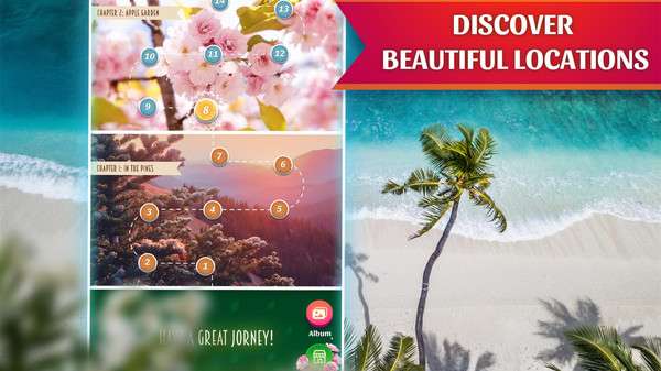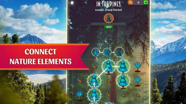自然连接在这里有不同的自然元素给大家开始连线合成的挑战,在这每一个关卡中都是设置好了挑战的任务。在地图上面会有不同的季节主题提供给你,每一个里面的元素都不同。基本上全部都是自然的风景,还有其他的背景照片大家可以通过用游戏的金币来购买更换一个。在界面的地图上面可以看到有不同的季节版图链接在一起,上面的数字关卡都是制定好的。