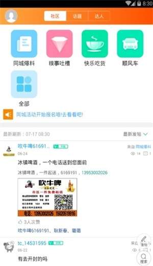 2.有着同城外卖,跑腿取送,同城商城,同城114,夜宵,顺风车,二手物品等强大的功能。