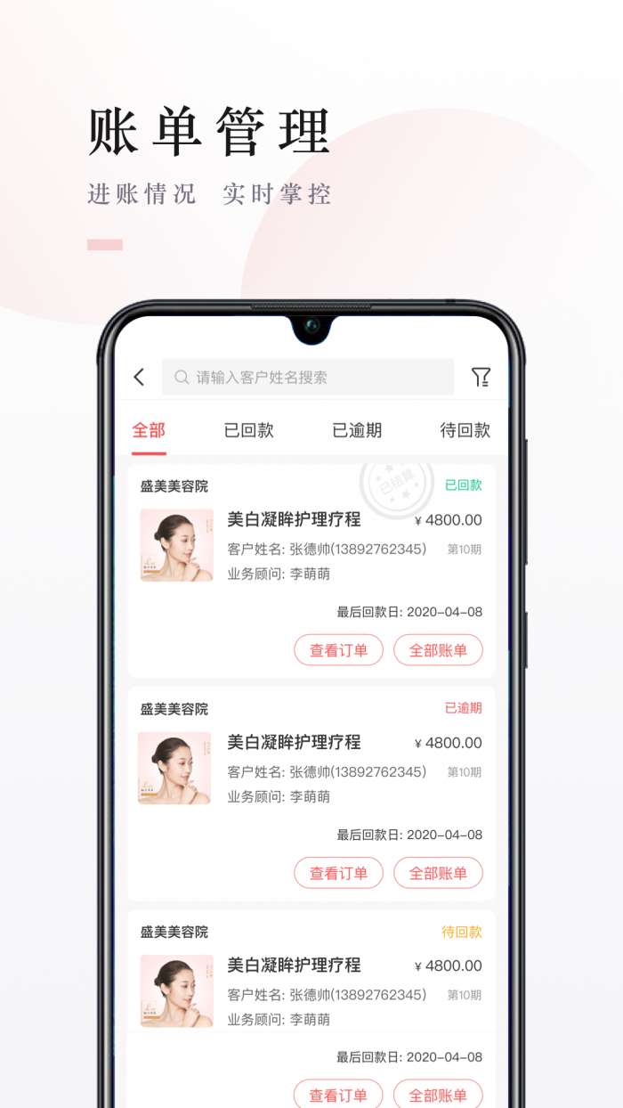 1、用户可以在线进行轻松管理,随时随地进行查看订单情况,以及账目收入情况等。