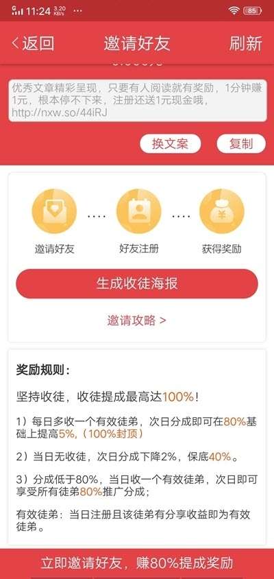 用户可以通过阅读和转发获得收入,单价高,取款门槛低。