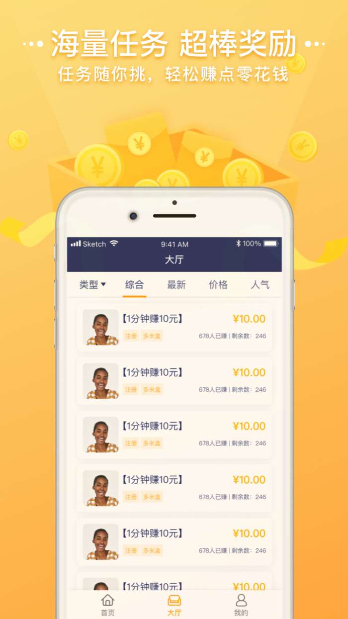 1、有超多的悬赏任务,让您在这里能够不断的接各种任务来获得体验,帮助每一位用户都能更好的在手机上进行赚钱