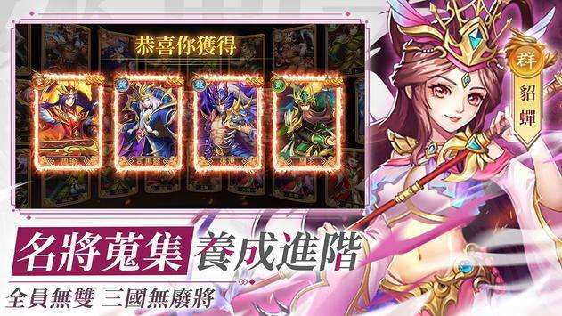 策略布阵打造一个天罗地网,打对手一个措手不及!玩家可以自由组合搭配武将,跳脱出阵营的限制,燃烧脑力创造出独一无二的阵容!更有武将合击系统,搭配战斗战力值UP!UP!UP!不管是前锋、中场还是后卫,只要能够上战场冲锋陷阵,就能在硝烟弥漫的三国乱世中杀出一条血路!