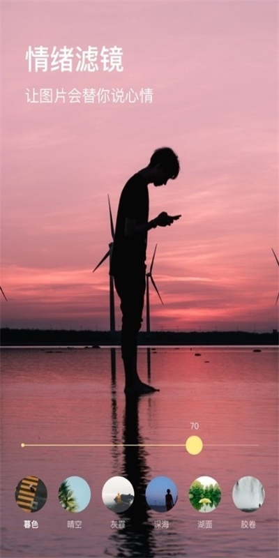 这款拍照app还可以使用云音乐上你喜欢的句子。特别喜欢他的情绪滤镜。让照片很有韵味。喜欢就赶紧下载使用吧!