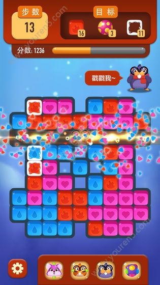 3、游戏有严格的步数限制,所以想好再动手,尽量一次性消除多一些,这样有利于你通关。