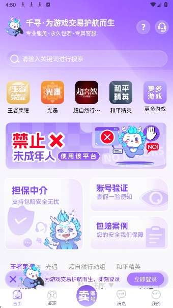 千寻代售提供大量热门游戏账号交易平台。专业评估师团队利用大数据算法分析市场变化,来鉴定游戏的价值。所有商品都有专人审核,过滤虚假账号和不可信卖家,作为中介与买卖双方签订电子合同。提供永久补偿服务,账号恢复7天不恢复+补偿费用。采用多重加密技术和实名认证系统,确保交易安全。整合先进的交易系统,严格的审核机制,完善的客户服务体系。提供一键下单、自动发货等功能,交易快捷高效。